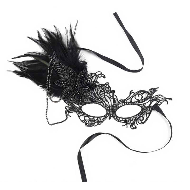 Elegant Vintage Rhinestones Feather Lace Mask For Halloween Balls Stage Performances Soft Costume Accessory