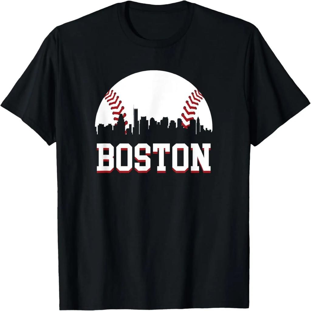 Boston City Skyline Massachusetts Cityscape Baseball Themed T-Shirt