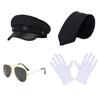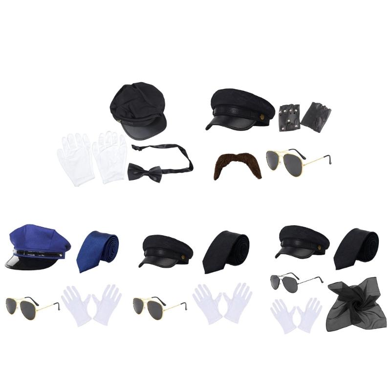 Doplňky ke kostýmu šoféra Černý klobouk Falešný vousy Sluneční brýle Rukavice Kravata pro kostýmy řidičů limuzín a taxi Párty