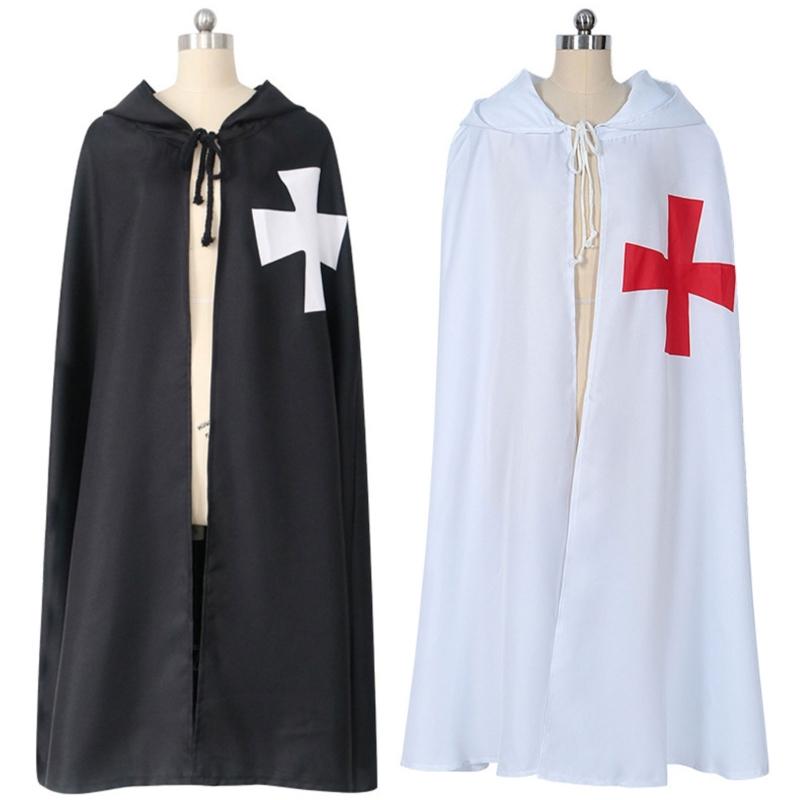 Medieval Cosplay Cloak Hospitaller Hooded Cape Medieval Cosplay Cloak Costume White/Black Cape Halloween Cloak Costume