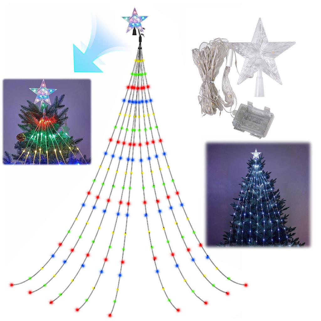 LED Waterfall Tree Lights with Topper Star Waterfall Christmas Tree Light Star String Lights for Holiday Decor