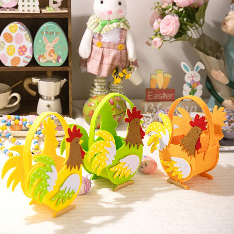 Rooster Baskets For Kids 3x Felt Easter Rooster Bucket Egg Stuffer Hunts Candy Storage Party Supplies Decorations For Boys Girls