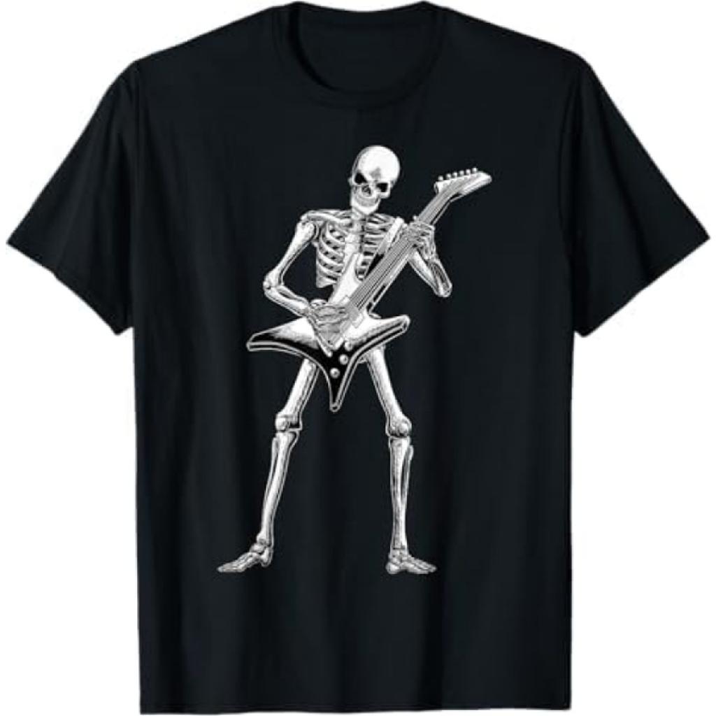 Skeleton Guitarist Rock and Roll Band Shirt Guitar Halloween T-Shirt AT1 Mens Womens Tank Top Sweatshirt Hoodie Black