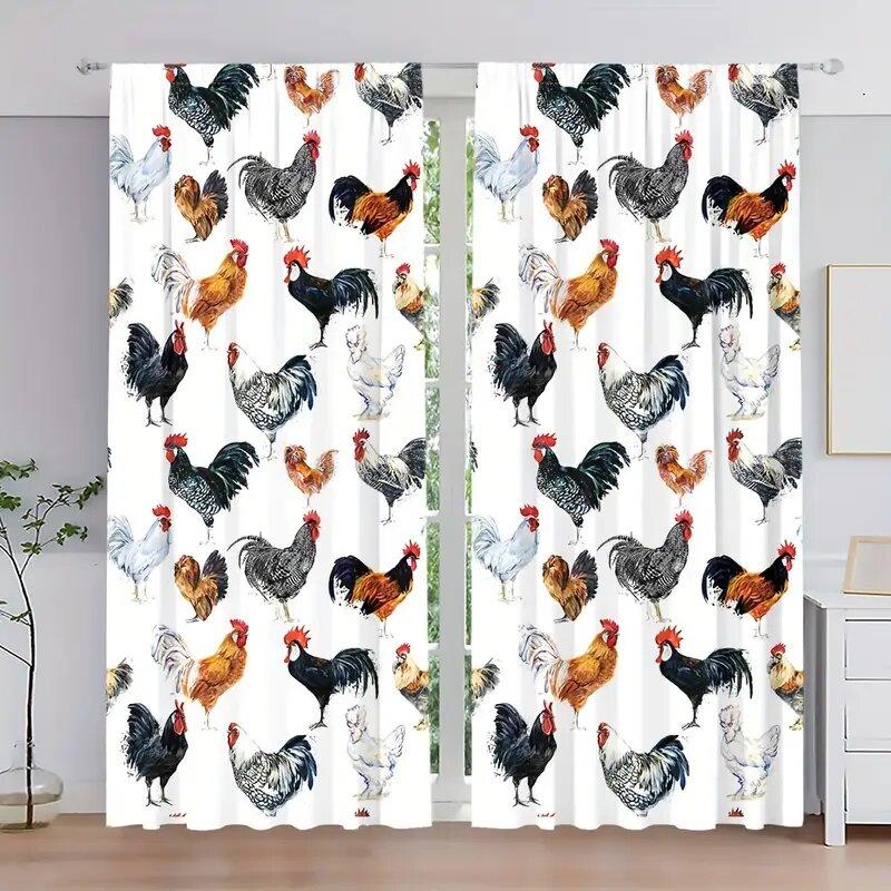 2 pieces - Colorful rooster and hen pattern printed curtains window decorations home decorations room decorations
