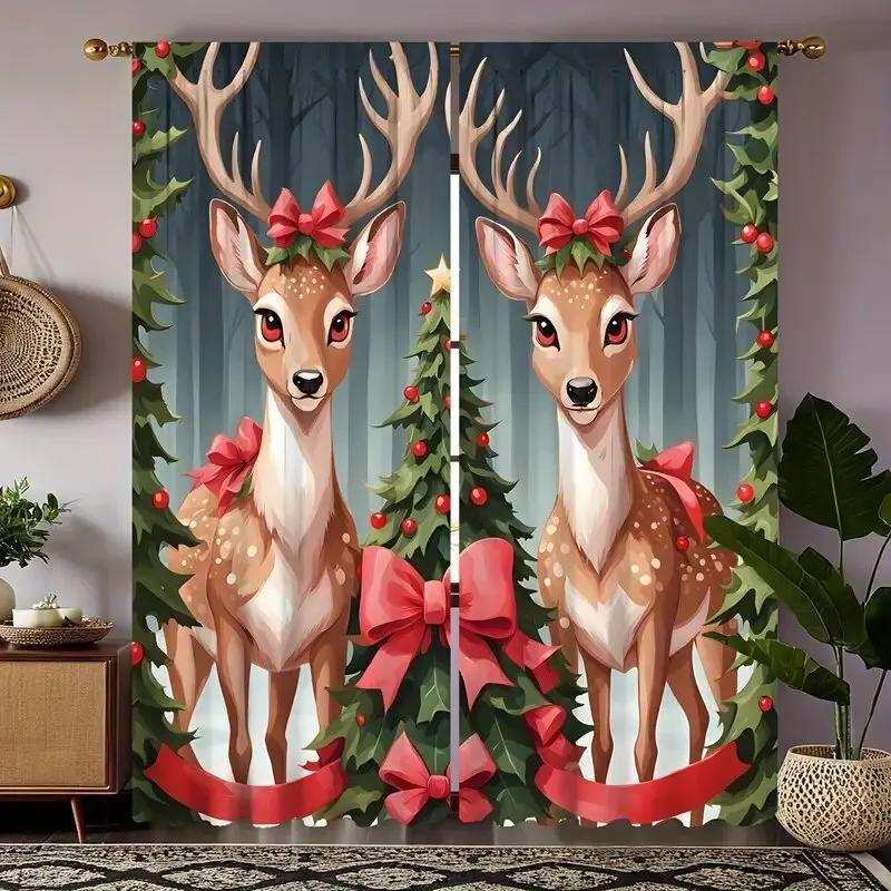 Christmas cartoon reindeer print curtains Christmas decorations bedroom and living room home decoration room decoration