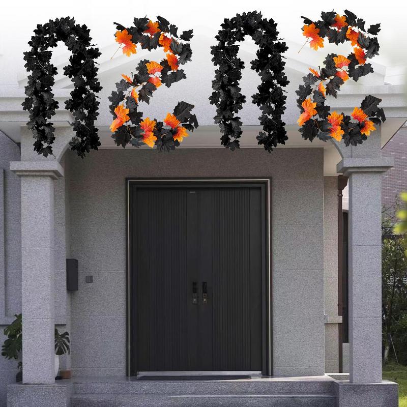 Fall Garland Autumn Decor 2pcs Black Realistic Maple Leaves Garland Mysterious Gorgeous Fall Decorations Outdoor For Christmas