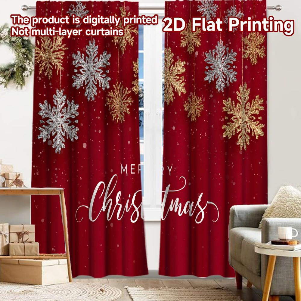 2pcs 2D FLAT PRINTING Curtains (Without Rod) Christmas Snowflakes Modern Fashionable Curtainments during the Christmas holiday