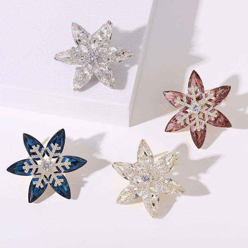 New Shiny K9 Crystal Snowflake Brooch Brooch Light Luxury Temperament Zircon Suit Pin