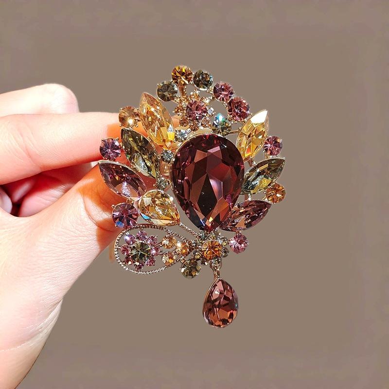 2025 antique fashion water drop brooch elegant glass diamond light luxury corsage wedding dress clothing accessories