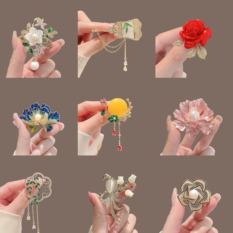 Ancient style auspicious clouds peony flower brooch elegant temperament high-end fashion corsage cheongsam Hanfu suit pin accessories
