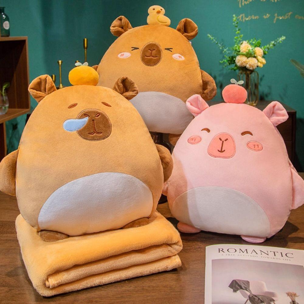 Cute Cartoon Capybara Pillow with Blanket with Hand Warmer Napping Car Pillow 3 in 1 Leg Cover Nap Pillow Student Dormitory