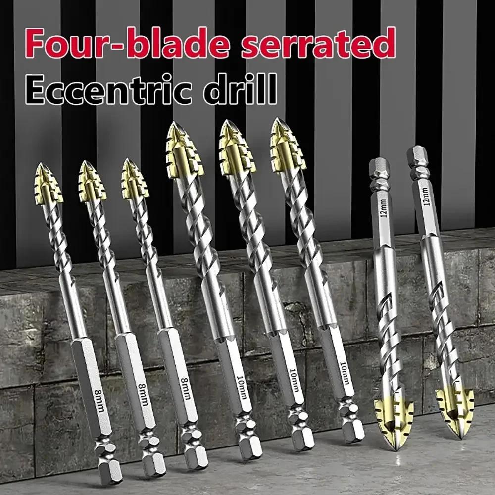1 ks Čtyřbřitý křížový ozubený vrták Šestihranná rukojeť Slitinová ocel Nástroj na vrtání dlaždic 5-12 mm Excentrický vrták