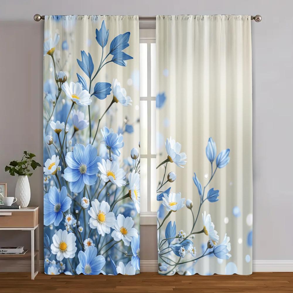 2pcs Window Curtain Rose Blue Chinese Painting Versatile 100% Polyester (without rod) Art Deco Festive Perfect for Bedroom