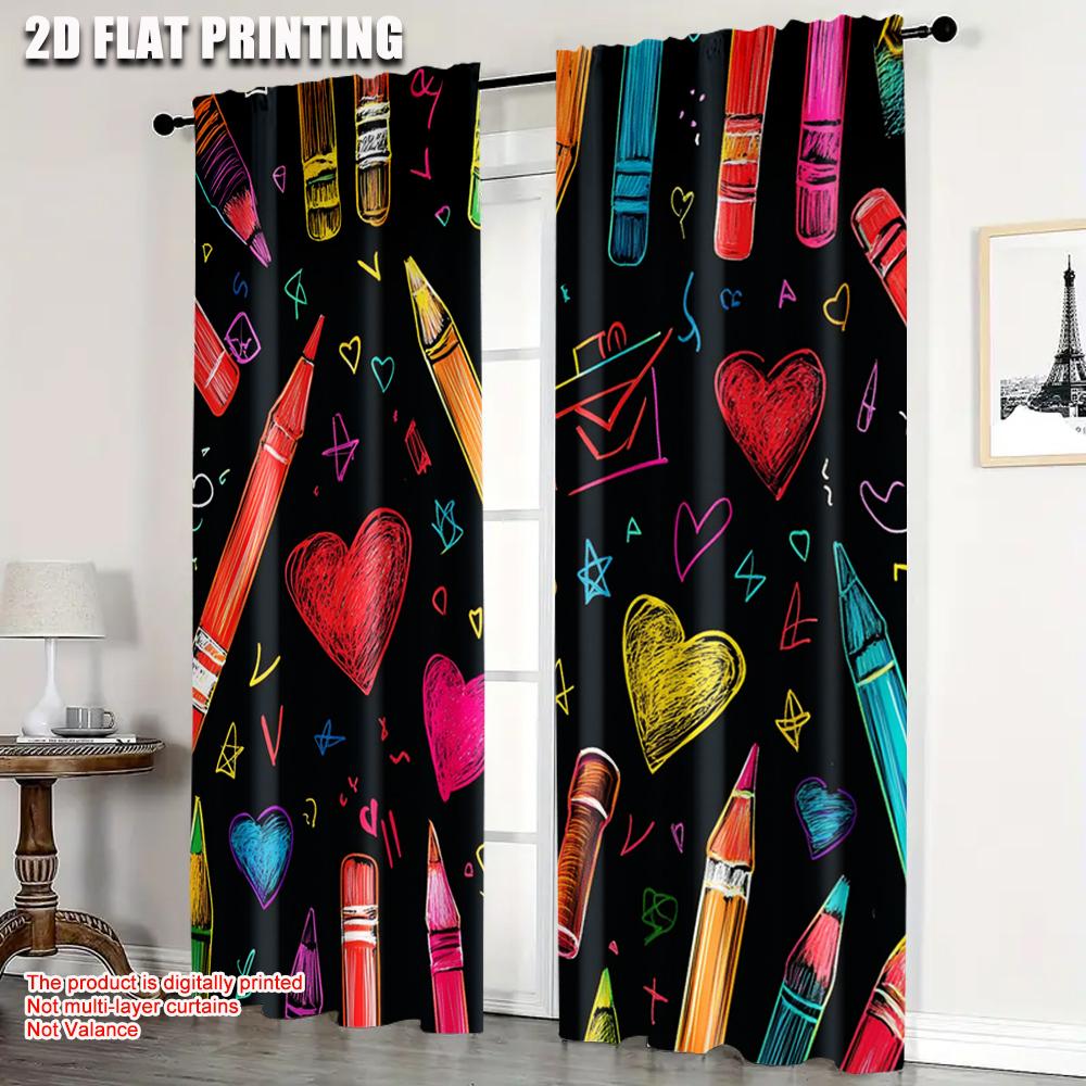 2pcs Curtain Fabric 2D plane printing Colorful Crayon Machine Washable (without rod) Room Decor Perfect for Bedroom & Various