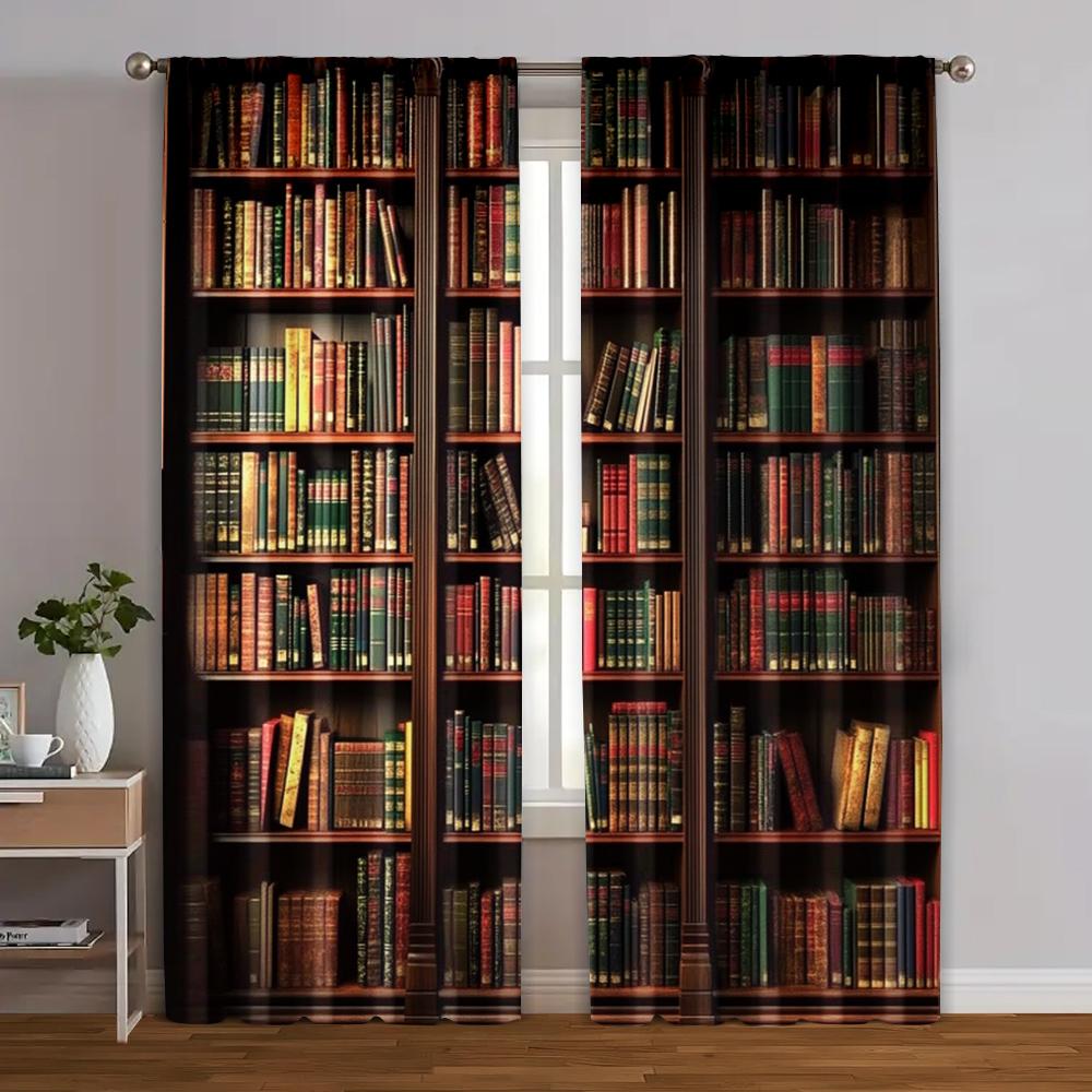 2 ks Závěsy Rolety 2D potisk Vintage Potisk Knihovny Polyester (bez tyče) Domácí dekorace Ideální pro ložnici a obývací pokoj