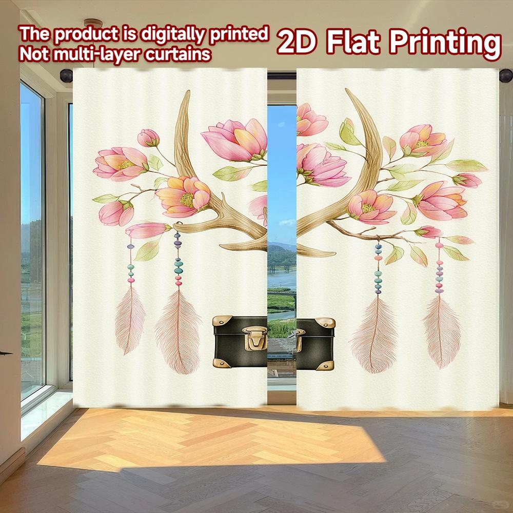 2D FLAT PRINTING 2pcs Curtains (Without Rod) Floral Skull Design New year Festival Creative Curtains Polyester Curtains Room