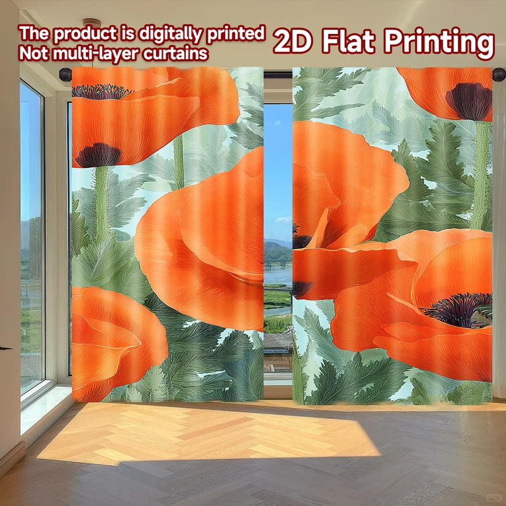 2D FLAT PRINTING 2pcs Curtains (Without Rod) Floral Poppy Design Ramadan holiday curtains with digital printing Versatile