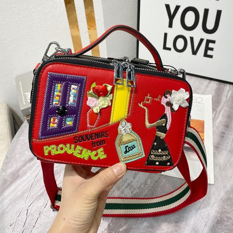 Bag Niche Design Women'S Bag Cartoon Embroidery Contrasting Color Handbag Women'S Creative Shoulder Messenger Bag Small Bag