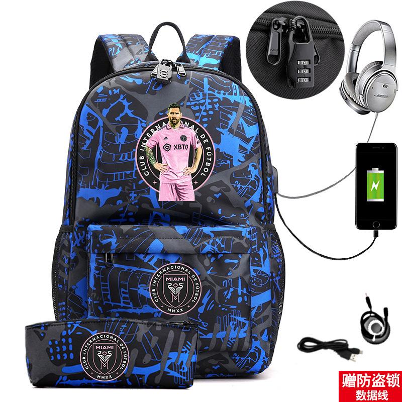 Football Star Surrounding Student Multi-Functional Schoolbag Large Capacity With Lock Backpack Pencil Case Set