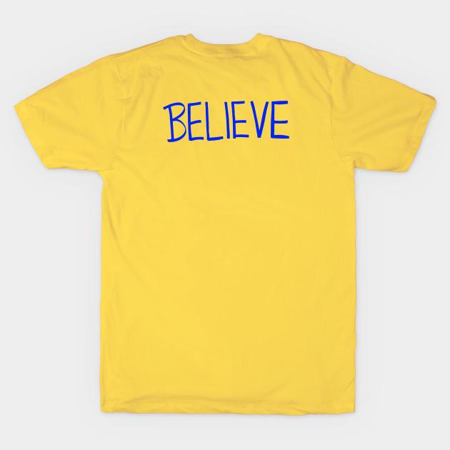 Men Black Print T-shirt Believe [Blue] No-Cut Transfer Paper Print Cotton Tshirt