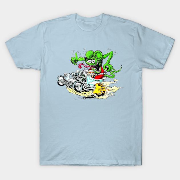 Men Black Print T-shirt Rat Fink Hot Rod No-Cut Transfer Paper Print Cotton Tshirt