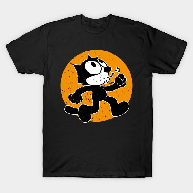 Pánské černé tričko s potiskem Felix the Cat Potisk na přenosovém papíře bez ořezu Bavlněné tričko