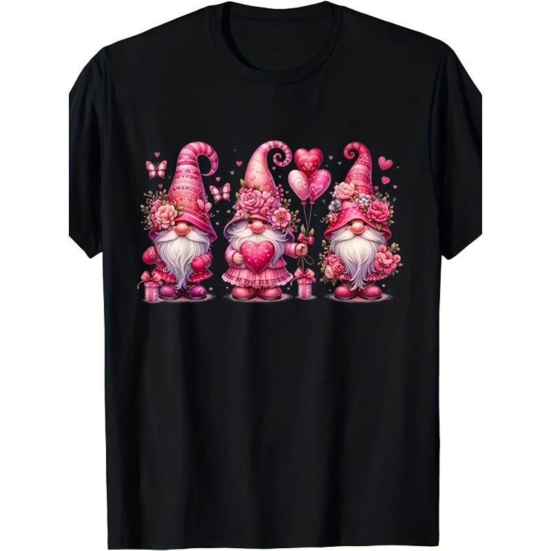 European sizes Valentine's Gnome T-Shirt for Men - Funny Heart Gnome Graphic Tee