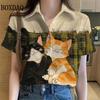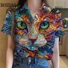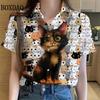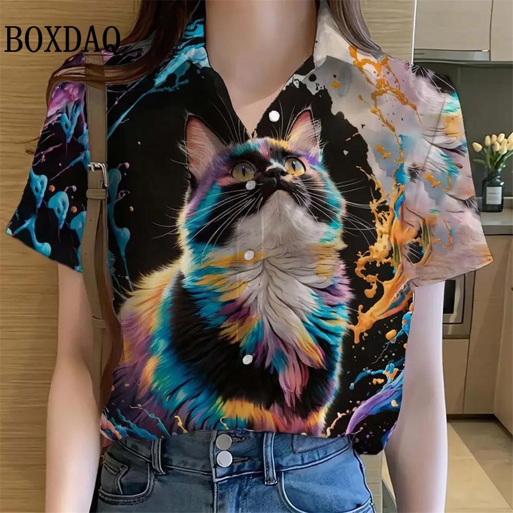 Womens Shirts Artistic Cute Cat Printed Casual Hawaiian Short Sleeve Button Beach Shirt Summer New Blouse Women's Clothes 2025