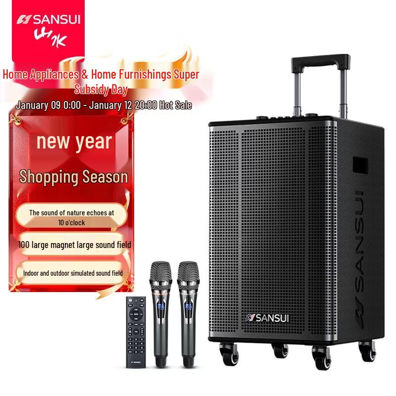 SANSUI E10 Outdoor Karaoke Bluetooth Speaker with Dual Microphones CN plug (adapter included)
