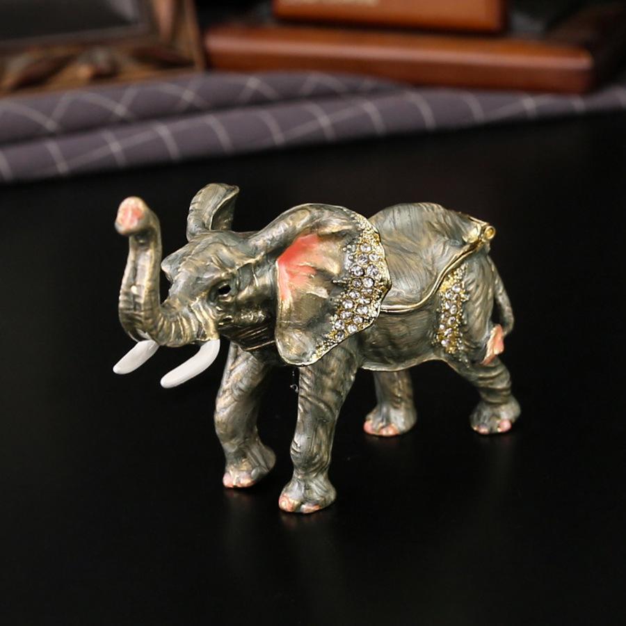 New light luxury enamel color diamond inlaid elephant jewelry box ring jewelry storage box tabletop ornament metal handicraft