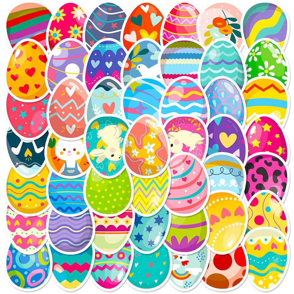 50pcs/set Self-Adhesive Waterproof Labels Easter Egg Bunny Cartoon Stickers Laptop Luggage Stickers for Kid Toys
