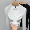 Stand-collar Base Blouse for Women Latest Womens Black Long-sleeved T-shirt Underwear with Waist-hugging Chinese Classic Style Button Top