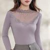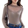 Lace Half Turtleneck Base Top for Women Updated Autumn and Winter Womens Stylishable Inner Long-sleeved Mesh Top