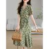 Chiffon Summer Dress for Womens Summer Latest Style Waist-hugging Slimming Floral Short-sleeved Skirt