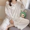 Dámské pyžamo z bavlny a lnu s krajkovým okrajem ve stylu Palace, kalhoty s dlouhým rukávem a kardigan, domácí oblečení
