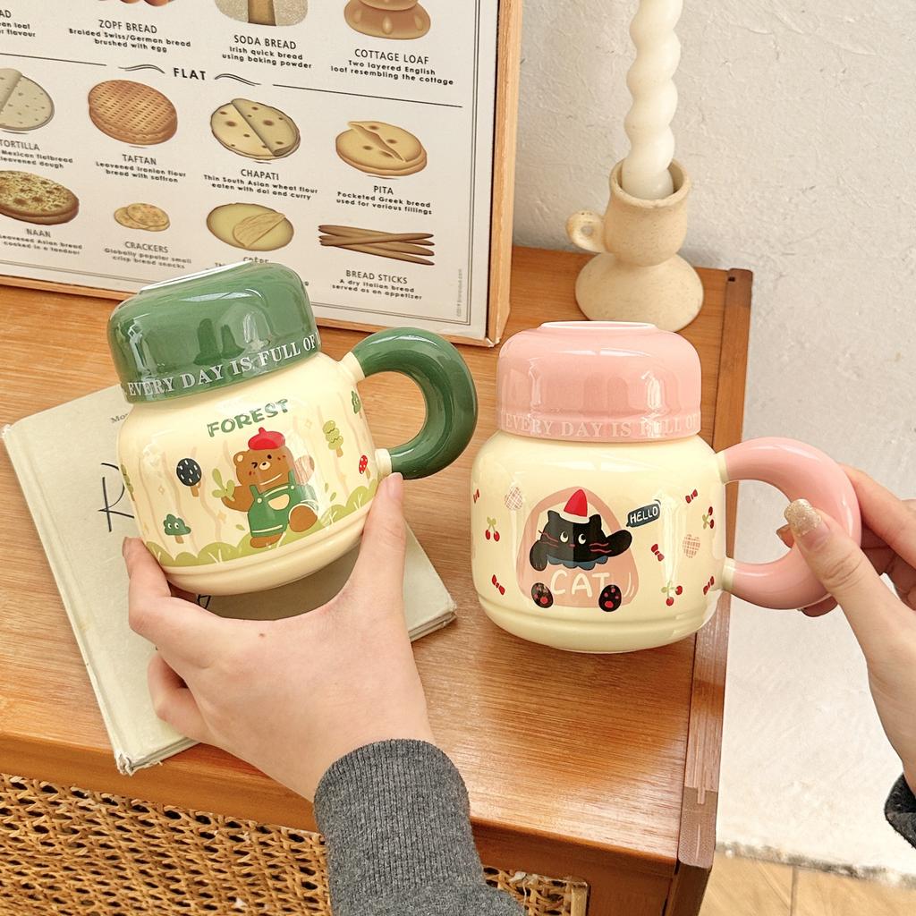 Milk fufu mug with lid cute ceramic cup girls couple water cup home coffee breakfast cup children