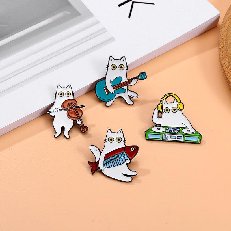 Cartoon Cat Brooch Symphony Orchestra Series Violin Piano Musical Instrument Combination Metal Badge Gift Ornament