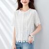 Lace Lace White Blouse for Women Short-sleeved Summer Updated Round Neck Embroidered Top Pure Cotton Womens Blouse