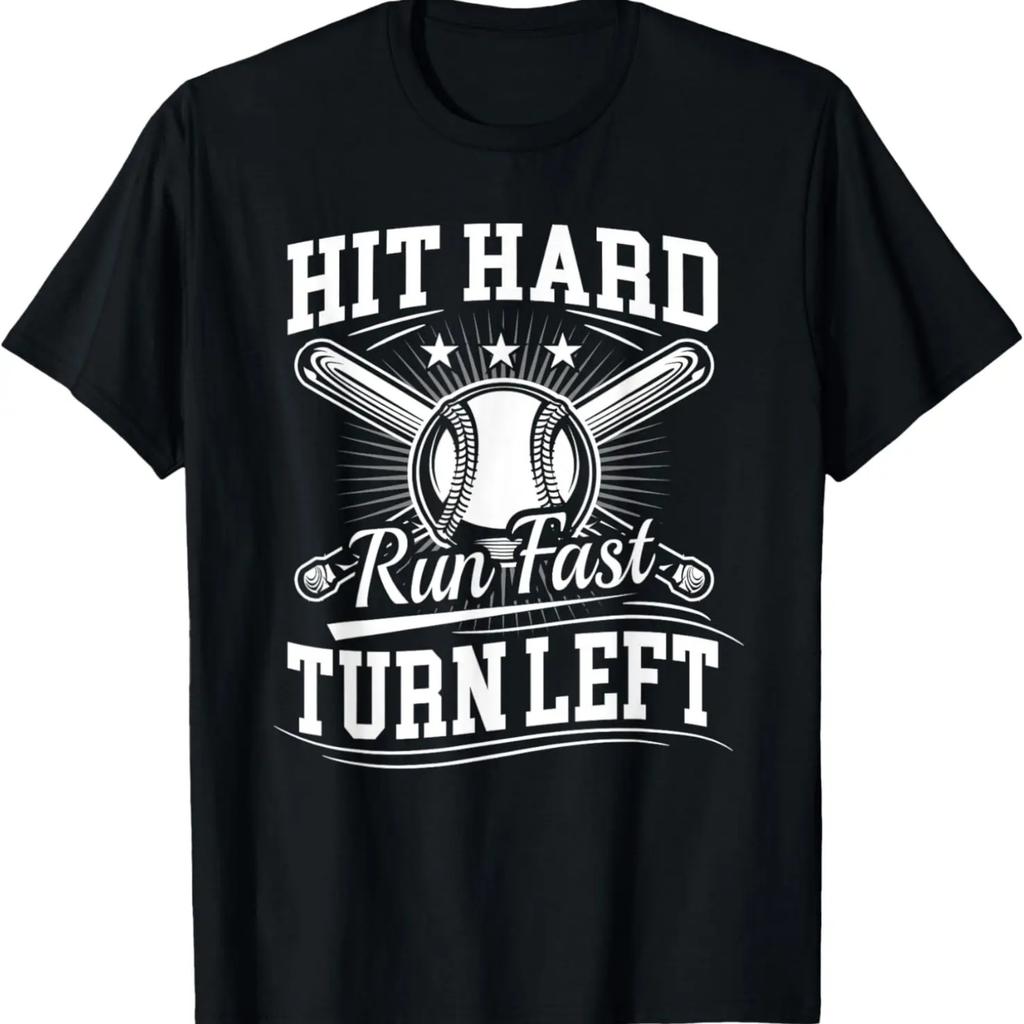 Hit Hard Run Fast Turn Left Dad Gifts From Son Baseball T-Shirt