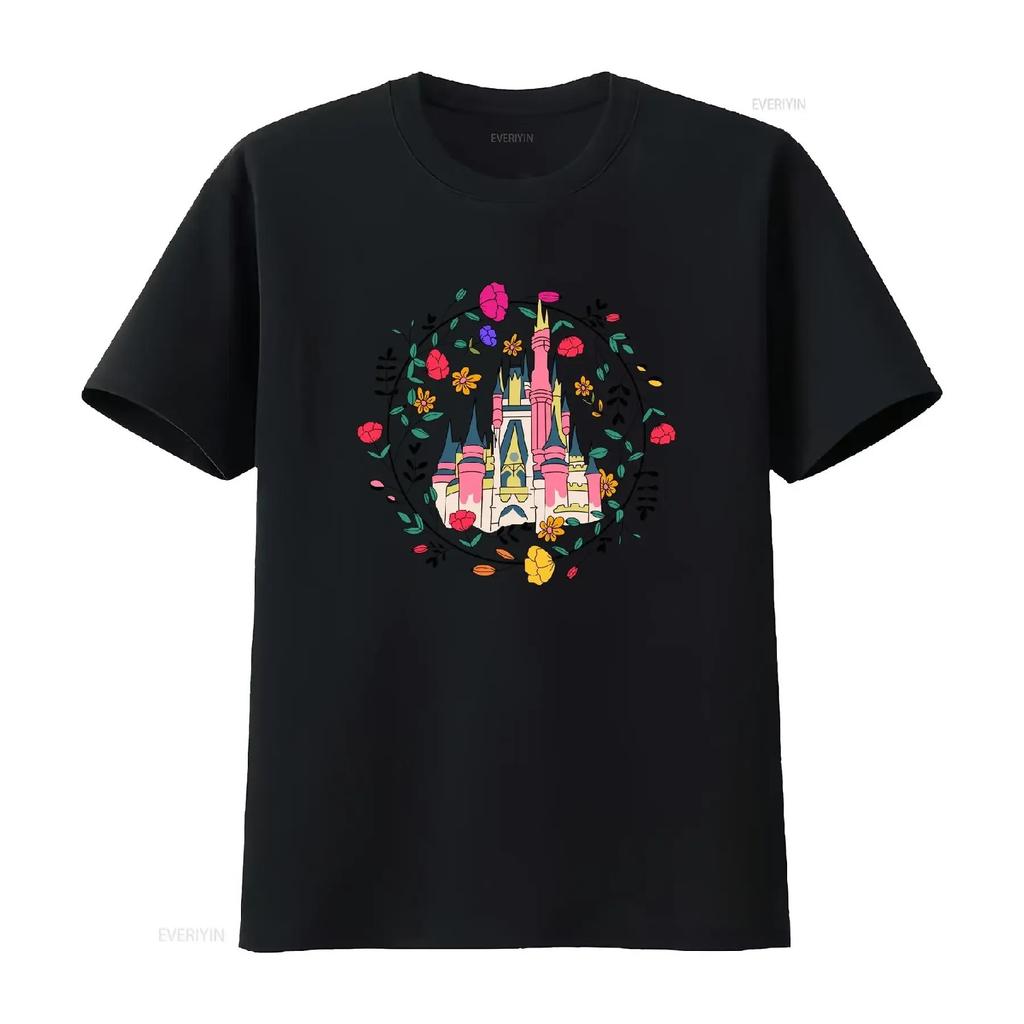 Magic Kingdom Castle T Shirt Princess Floral Spring Magical Vacation Matching Family vintage Washed Casual Versatile Stylish