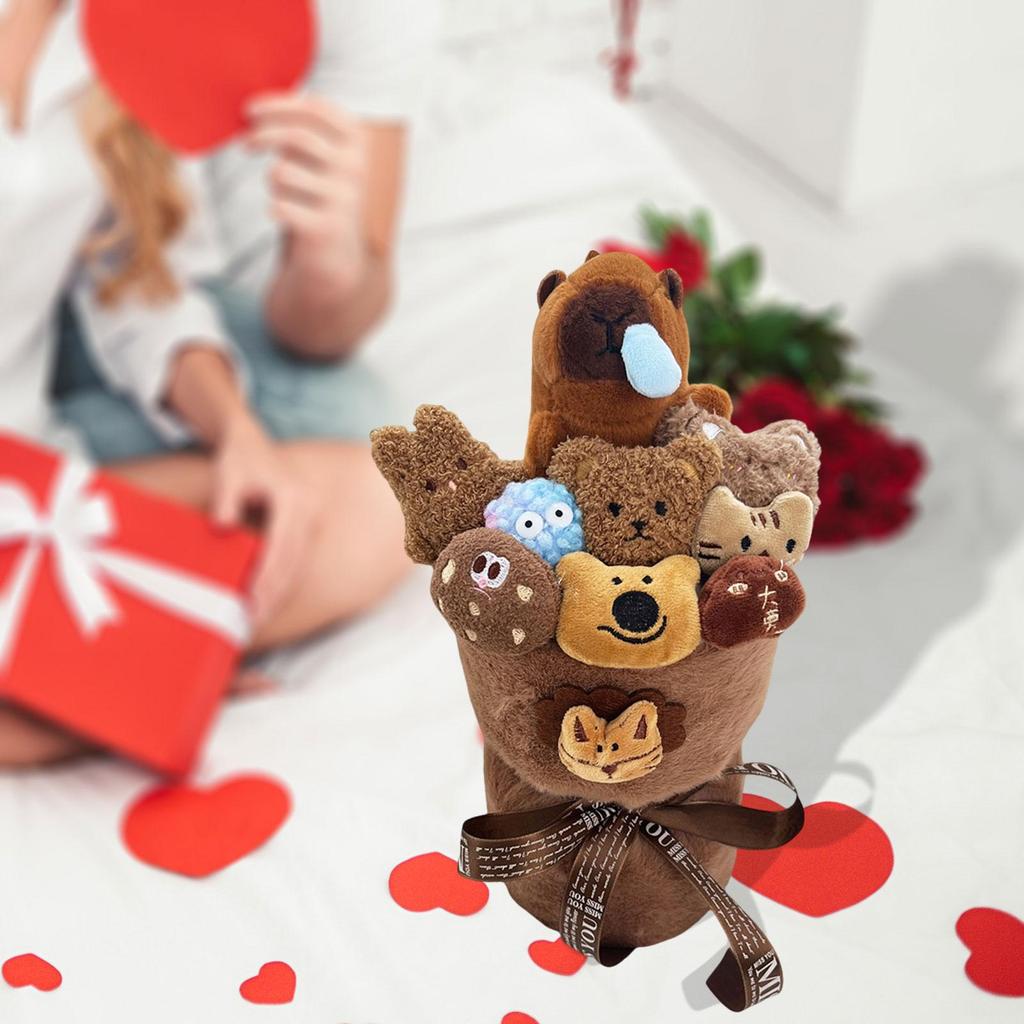 Plush Doll Bouquet Toy, Artificial Flower Bouquet Ornament Stuffed Animal Doll