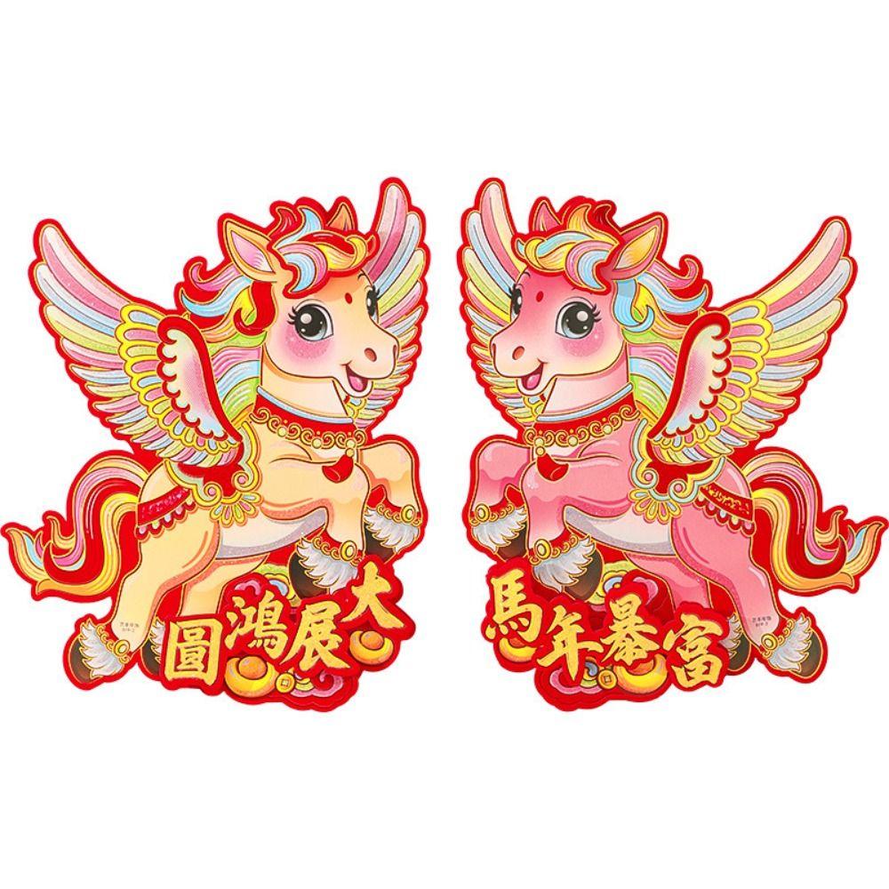 Good Lucky Horse Year Spring Festival Decoration Fu Character 3D Door Banner Cartoon Horse Door Sticker 2026 Spring Festival