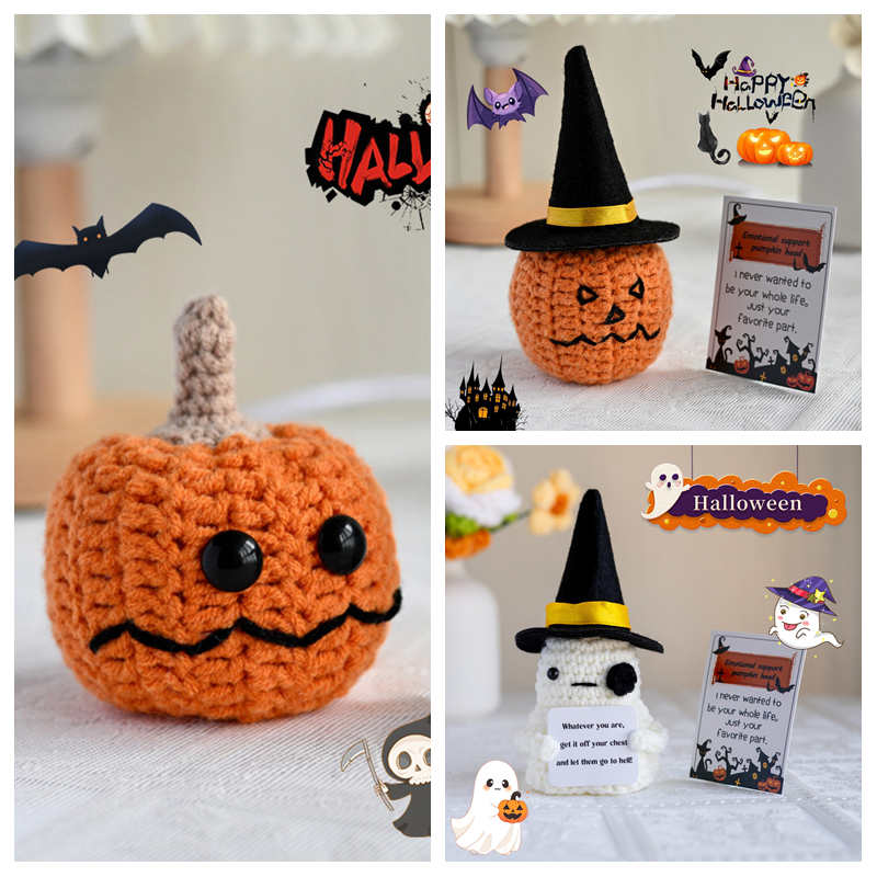 Halloween Crochet Pumpkin Ornament With Hat Card Desktop Decoration Halloween Horror Supplies Office Accessorie Christmas Gift