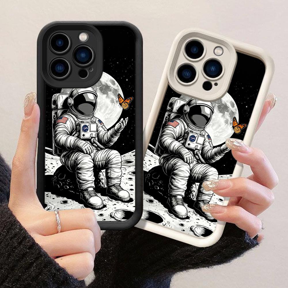JT52 Astronaut's Moon Adventure Butterfly Phone for iPhone 17 Pro Max Samsung S26 A17 A07 Xiaomi 15T Redmi Note 14 Pro Plus Soft TPU Case Cover