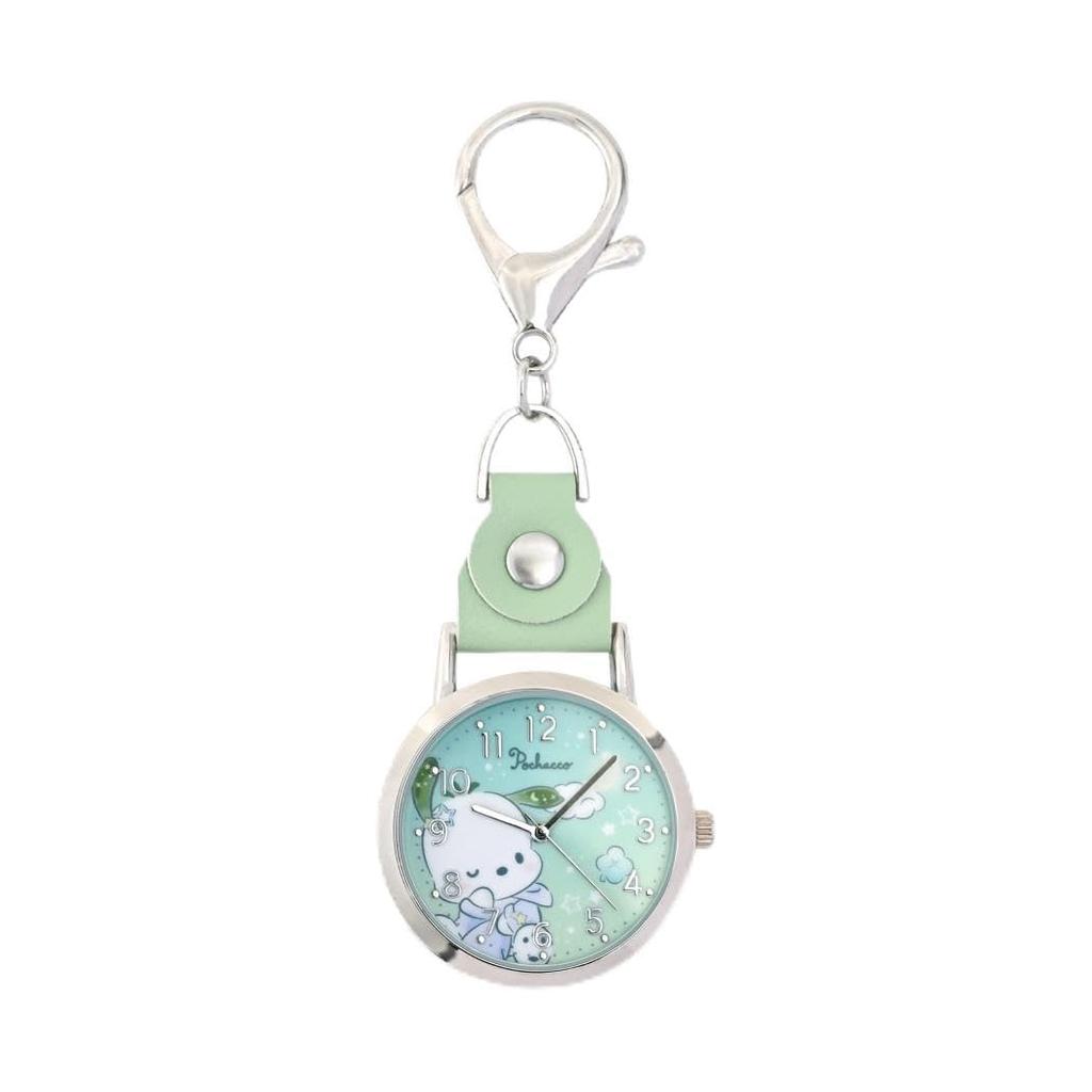 Fieldwork Analog Pocket Watch with Sanrio Cute Snap Perfect for or KC Watch G Pochacco Green Women's Keychain, Characters, Snap, Commuting, School,
