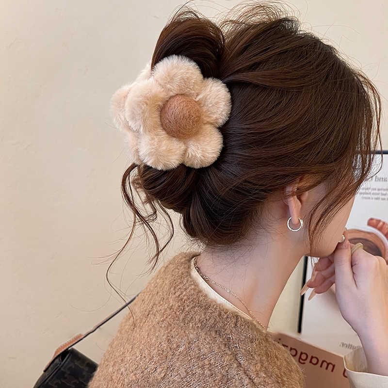 Autumn and winter retro double-sided plush flower grab clip hairpin back head shark clip French sweet hair accessories woman