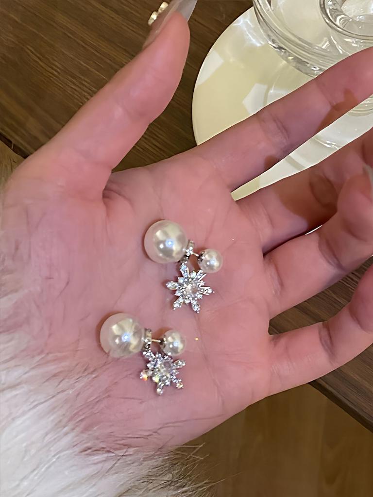 Autumn and winter Korean sweet zircon snowflake pearl earrings, stud earrings, exquisite earrings for women