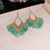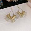 Seaside vacation style flower shell fringed long earrings stud earrings women's earrings design sense