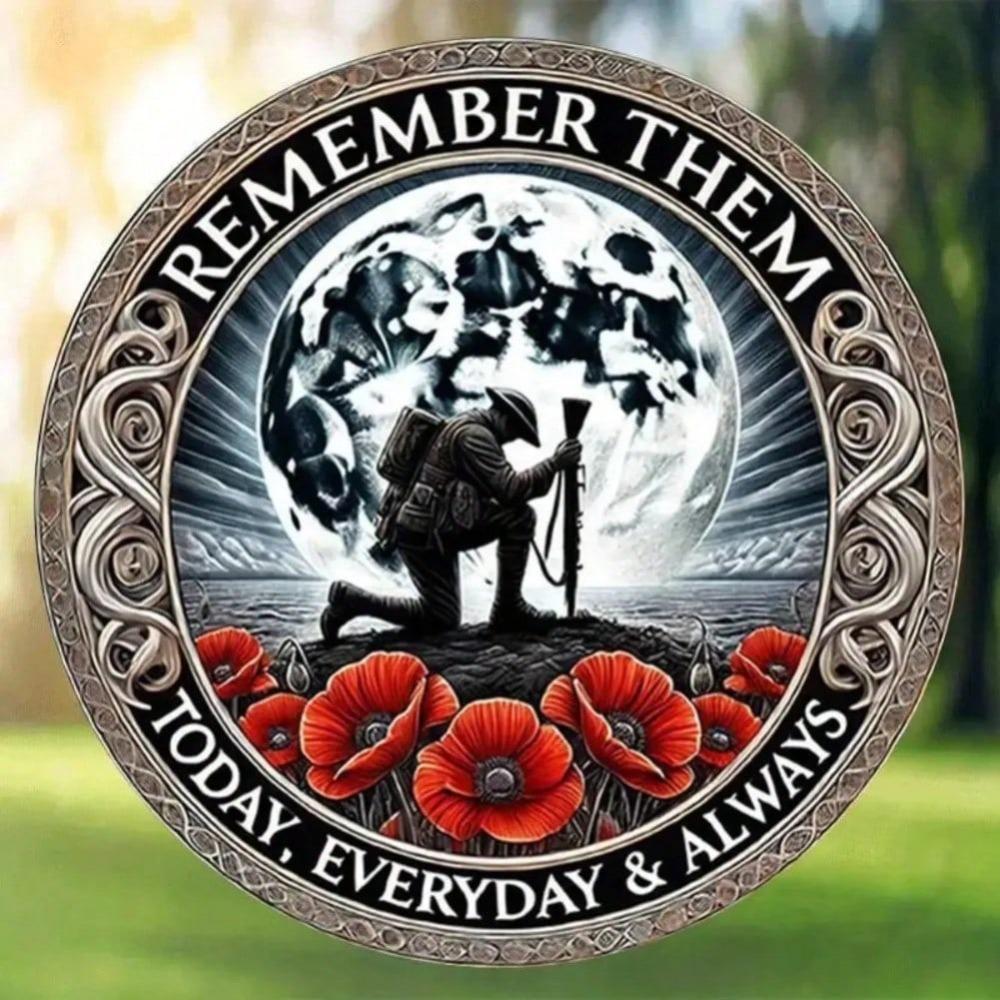 Vintage Military Tin Sign 8 Inch Round Memorial Wall Decor