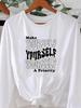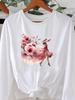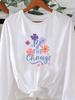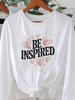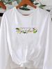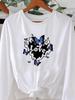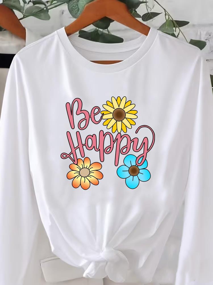 (Asian Size) flower letter cute style Printed o-neck Long Sleeve T Shirt Tee Lady Women Female Clothing Casual Fashion Top Graphic T-shirts